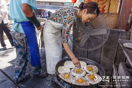 爸爸参观严家大院,旁边的小铺生意兴隆,我们买了二个破酥粑粑,红糖包心的破酥粑粑香酥甜糯;葱花、花椒、肉丁作馅的破酥粑粑咸香酥绵,味道比路上买的好太多.这个小铺有二块匾,门额上的横匾写着"酥香园",柱子上的竖匾写着"和尚破酥粑粑".俊俏的姑娘揉面做饼,精壮的小伙子装炉烤制,小伙子双手一抖,就把饼抛入炉盘,拨碳煽风,用大电风扇吹得炉顶碳火通红.刷油、翻饼反复几次,土豪金版的还要在烘培过程中加鸡蛋,当金黄香酥的饼出炉,小伙子早已汗如雨下.至于"和尚破酥粑粑"招牌的由来,小伙子说"和尚"是他小时候的外号.