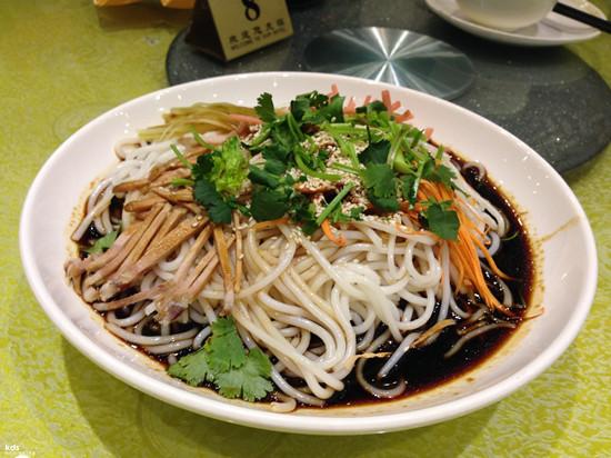 ! r3 x' x, d! e) y$ y- E$ k 米线是云南的特色美食,顾名思义就是用米做出的线状食物,可煮可炒,可卤可拌,而在大理,本地人喜欢吃凉拌米线,不同民族自然也有不同的讲究。回族人民多喜欢凉鸡米线,就是将做好的白斩鸡撕成条状拌入米线里,加入梅子醋和一些调料,最后浇上一勺卤子水,入口酸甜爽滑,是开胃解暑的最佳选择;而在白族人家里,多喜欢吃生皮凉米线,单吃生皮不乏有些油腻,但如果拌入米线就会把口味中和,加入萝卜丝和一些调料,一碗特色美食就出炉了。与凉鸡米线的酸甜,生皮凉米线口味偏重,酸辣升级,是来大理不得不吃的美食。