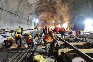 3月19日,祥和隧道内,二衬施工和无砟轨道施工同时进行。